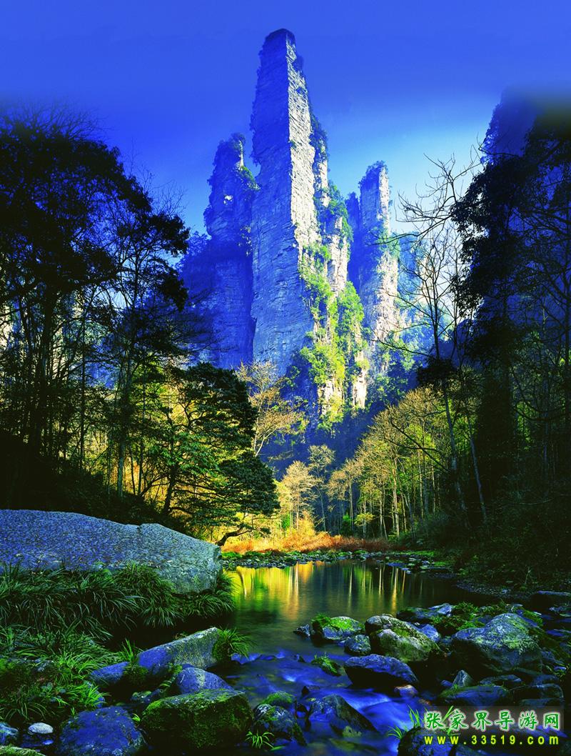 張家界國(guó)家森林公園位于湖南省西北部張家界市境內(nèi),是1982年由國(guó)務(wù)院委托國(guó)家計(jì)委批準(zhǔn)成立的中國(guó)第一個(gè)國(guó)家森林公園,1992年12月因奇特的石英砂巖大峰林被聯(lián)合國(guó)列入《世界自然遺產(chǎn)名錄》,2004年2月被列入世界地質(zhì)公園。公園自然風(fēng)光以峰稱奇、以谷顯幽、以林見秀。其間有奇峰3000多座,這些石峰如人如獸、如器如物,形象逼真,氣勢(shì)壯觀。峰間峽谷,溪流潺潺,濃蔭蔽日。有“三千奇峰,八百秀水”之美稱。公園不僅自然風(fēng)光壯美絕倫,而且森林植物和野生動(dòng)物資源極為豐富,森林覆蓋率達(dá)98%,是一座巨大的生物寶庫和天然氧吧,被稱為“自然博物館和天然植物園”。草木禽獸與奇山異水,同生共榮,形成完美的自然生態(tài)系統(tǒng)。