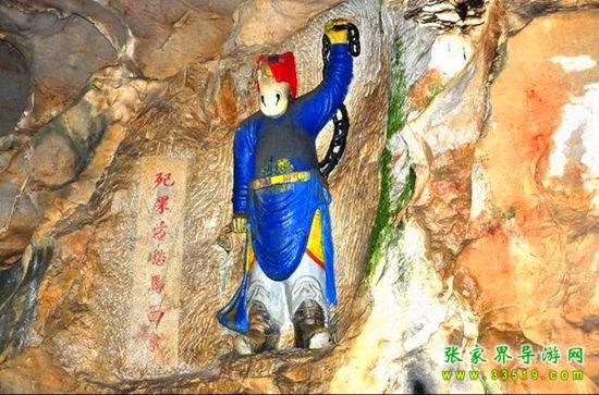 玉皇洞石窟位于張家界城西約7公里的麻空山南壁,為清代本地鄉(xiāng)紳李京開獨資捐修。李京開又叫李五瑞,別名九洞樂,號識破生。他生于乾隆七年(公元1742年),道光乙酉年(1825年)去世,享年83歲。李先生家道殷實,富甲一方。少時勤奮讀書,頗有才華,數(shù)十年奔波仕途,但屢試不第,官場無望,于是看破紅塵,另尋安慰,請工匠,耗巨資,憑借麻空山天然溶洞,按上、中、下方位布局,巧妙構(gòu)思,開鑿成“天堂”、“人間”、“地府”三層共八個洞。另外,在離此約3公里的峰泉洞另鑿一洞,故有“九洞樂”別名。玉皇洞石窟上層為玉皇洞,人間層有玉金洞、毫筆洞、墨池洞、虎龍洞、雄獅洞、孔圣洞,地府為因果洞,八洞組成一個完整的混沌世界。居八洞之首的玉皇洞,雕有玉皇大帝神像,意為“天堂”至尊,統(tǒng)帥中層的“人間”和下層的“地府”,故八洞統(tǒng)稱玉皇洞。此洞于1799年動工,到1807年完成,歷時八年。洞內(nèi)雕鑿了一些歷史人物的神像以及大量詩詞匾對,不僅石雕精湛獨特,雕像神韻生動,書法遒勁大氣,而且在石窟藝術(shù)的主題構(gòu)思上,抒發(fā)了主持捐修者李京開懷才不遇、憤世疾俗、向往太平盛世的情感,鞭達(dá)了腐朽的科舉制度,對于研究清代社會和科舉制度,以及當(dāng)時一般讀書人的思想情感,都具有一定的史料價值。整座洞窟東西長300余米,現(xiàn)存石像19尊,石刻50多處,是湖南省唯一保存完好的石窟藝術(shù)群,1959年玉皇洞被列入湖南省重點文物保護(hù)單位。