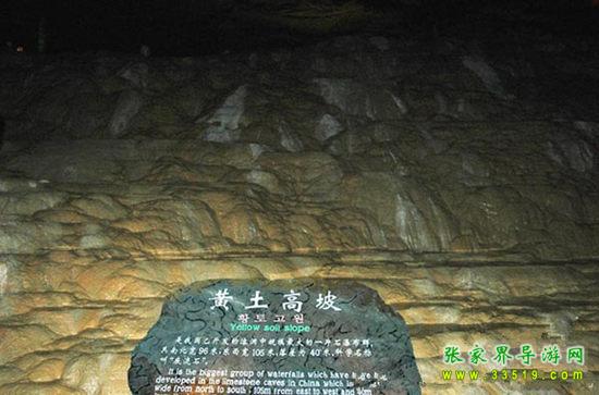 我們現(xiàn)在來(lái)到了黃龍洞最寬的大廳——南北寬達(dá)96米的天仙宮。天仙宮有洞內(nèi)最大的石瀑布群,南北寬62米,東西寬105米,落差達(dá)40米。人們給它取了一個(gè)很生動(dòng)形象的名字——黃土高坡?;蛟S您已經(jīng)看到了,黃土高坡上面竟然生長(zhǎng)有植物!真是“洞中乾坤大”??!它們是簡(jiǎn)單的蕨類(lèi)植物。它們?yōu)槭裁茨軌蛟谶@兒生長(zhǎng)呢?這主要因?yàn)楣夂献饔?,是日光燈神奇的力量喚醒了它們的生命之?mèng)。