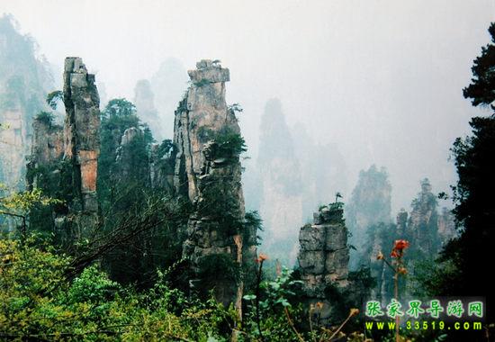 數(shù)以千計(jì)的奇峰怪石拔地而起森列谷中。在建筑師看來(lái),石峰如塔、如柱、如屏、如樓、如堡、如墻,鱗次節(jié)比、錯(cuò)落有致,展現(xiàn)了一幅宏偉的建筑藍(lán)圖;在藝術(shù)家看來(lái),石峰似人、似佛、似鳥、似獸、似花、似樹,似瓊樓玉宇,生動(dòng)逼真唯妙唯肖,似一幅彩色的畫卷;在軍事家看來(lái),石峰是將、是兵,是鼓、是旗、是車、是馬,威武雄壯嚴(yán)陣待發(fā),象一支天降的軍隊(duì)。
