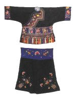 據(jù)史載,有關(guān)土家族的服飾宋代稱“溪布”、“峒布”、“土錦”等。后受漢族先進(jìn)技術(shù)影響,土家人用自織自染的“土布”做成圍裙。到現(xiàn)代,土家服飾發(fā)生了巨大變化,但仍保留了許多傳統(tǒng)樣式。土家族人始終著以琵琶襟為特征的滿襟衣。托肩矮領(lǐng)大袖口,滾花