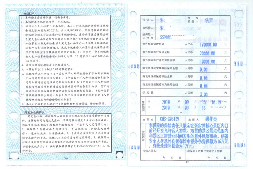 以下就是最重要的一個(gè)張家界核心景區(qū)所列的保險(xiǎn)明細(xì):