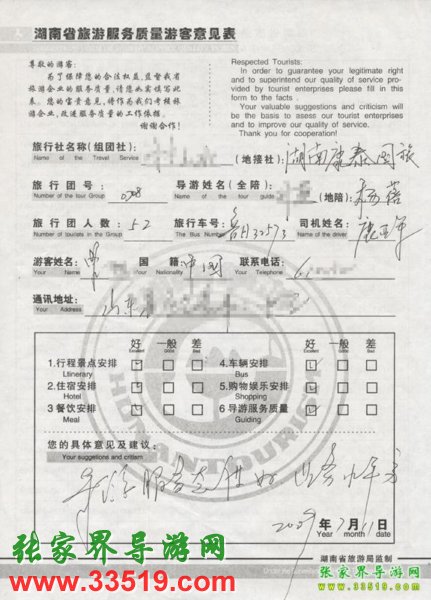 2009年7月11日山東曾先生一行52人質量接待反饋單: