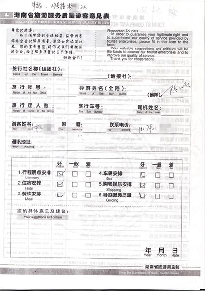 2011年5月1號楊先生一行2人旅游質(zhì)量反饋