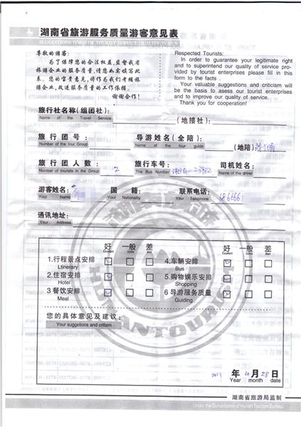 2011年4月28日何先生一行2人旅游質(zhì)量反饋